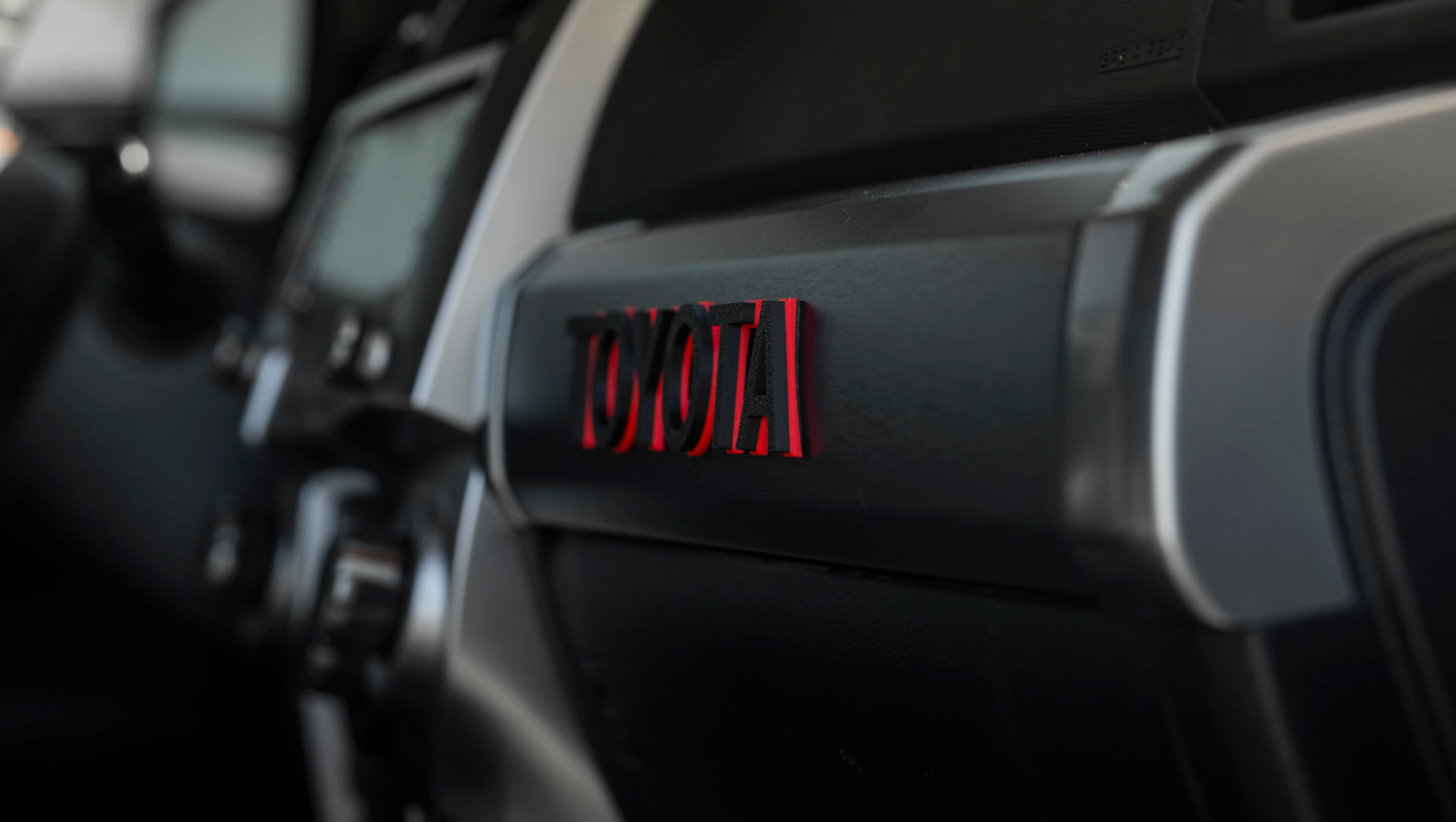 We designed these letters with an integrated curve to match that dash profile curve, so they sit on the passenger side dash panel with a factory-style fit - no heat gun needed. The letters have already been precision fit to the dash curve on the 5th Gen 4Runner.
