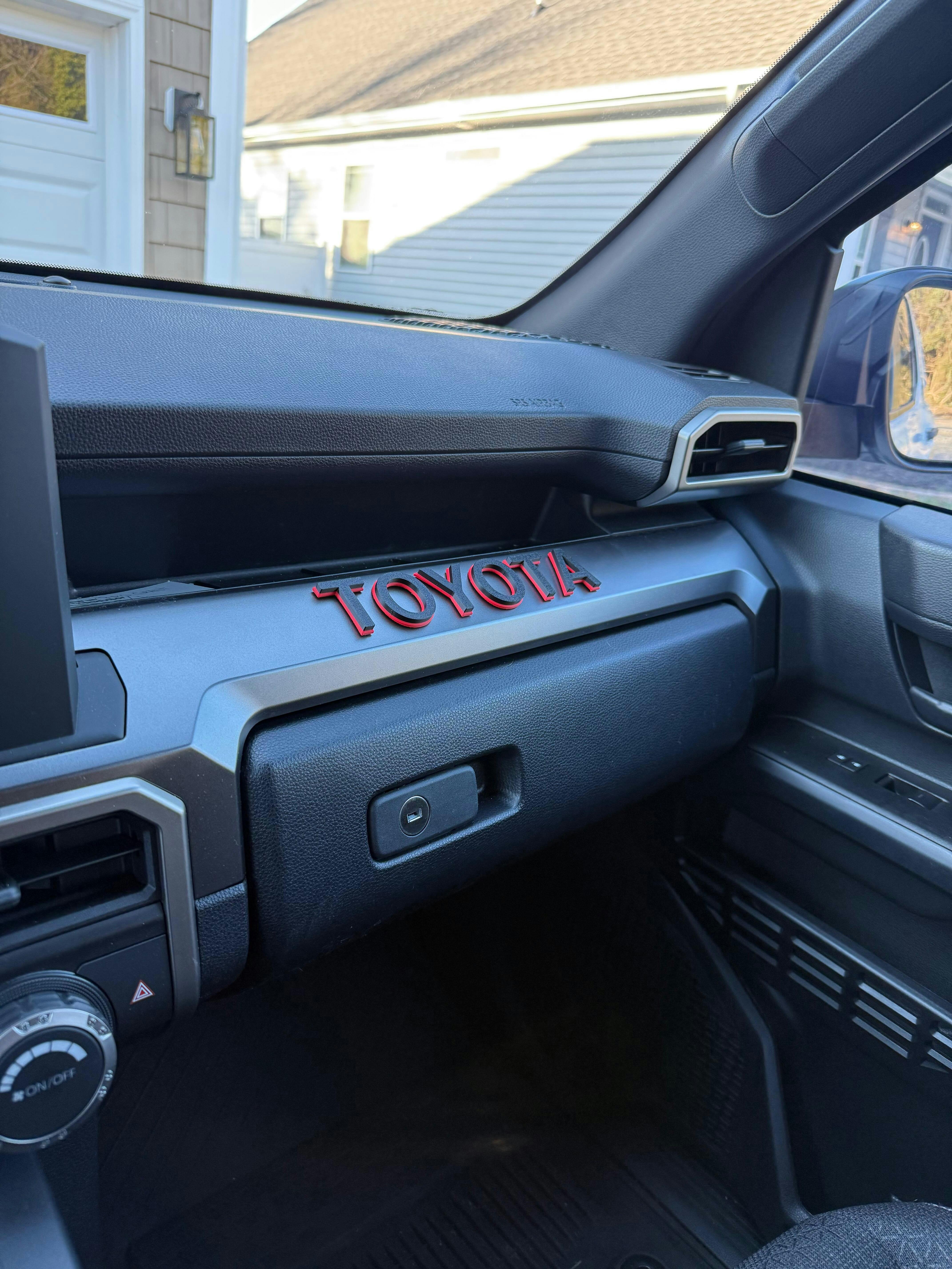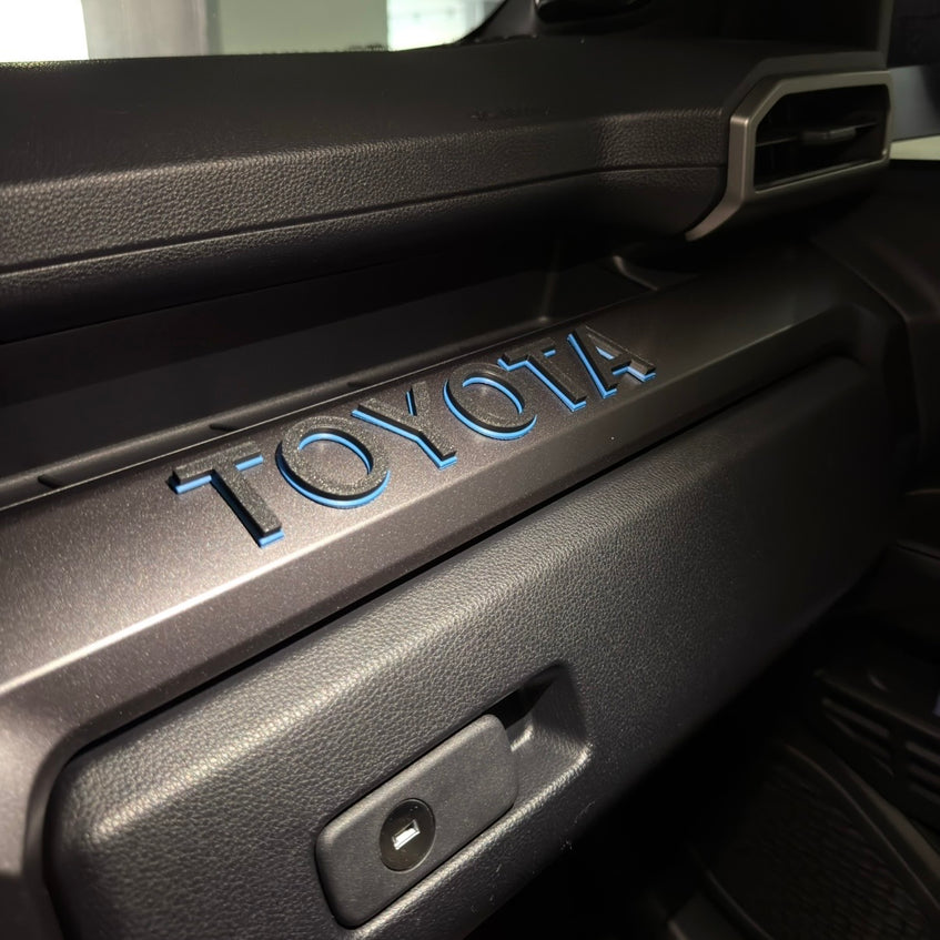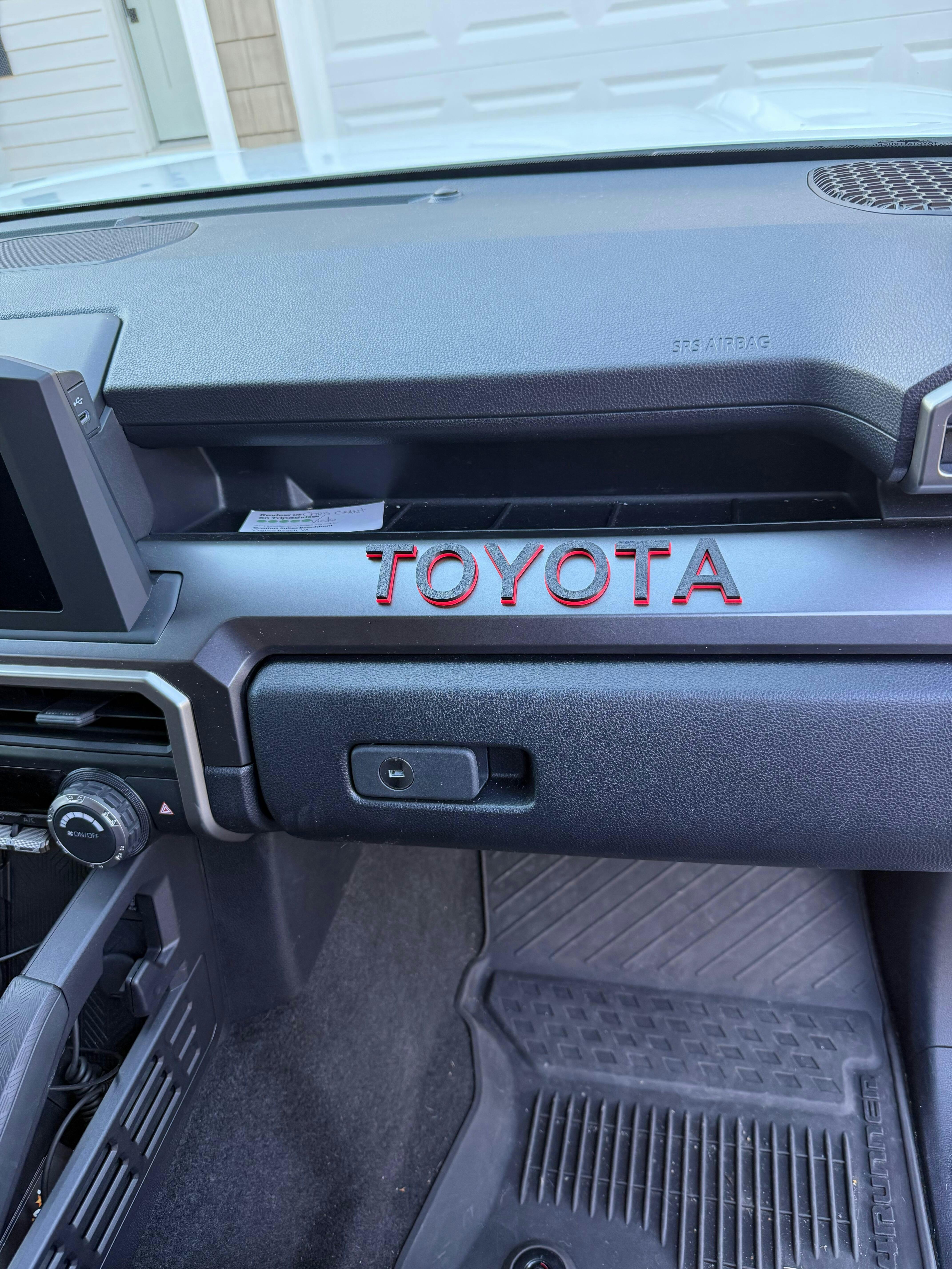 The 2025 plus 6th Gen 4Runner TRD Pro and Trailhunter trims come from Toyota with a TOYOTA badge on the passenger side dash panel. Other trims like Sport and TRD Off Road do not. If you want that TRD Pro-style dash look on your 6G 4Runner, this is the cleanest way to do it.